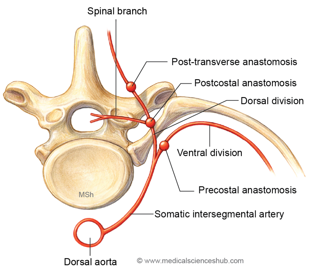 and the right seventh cervical intersegmental artery, which contributes to the distal part.
