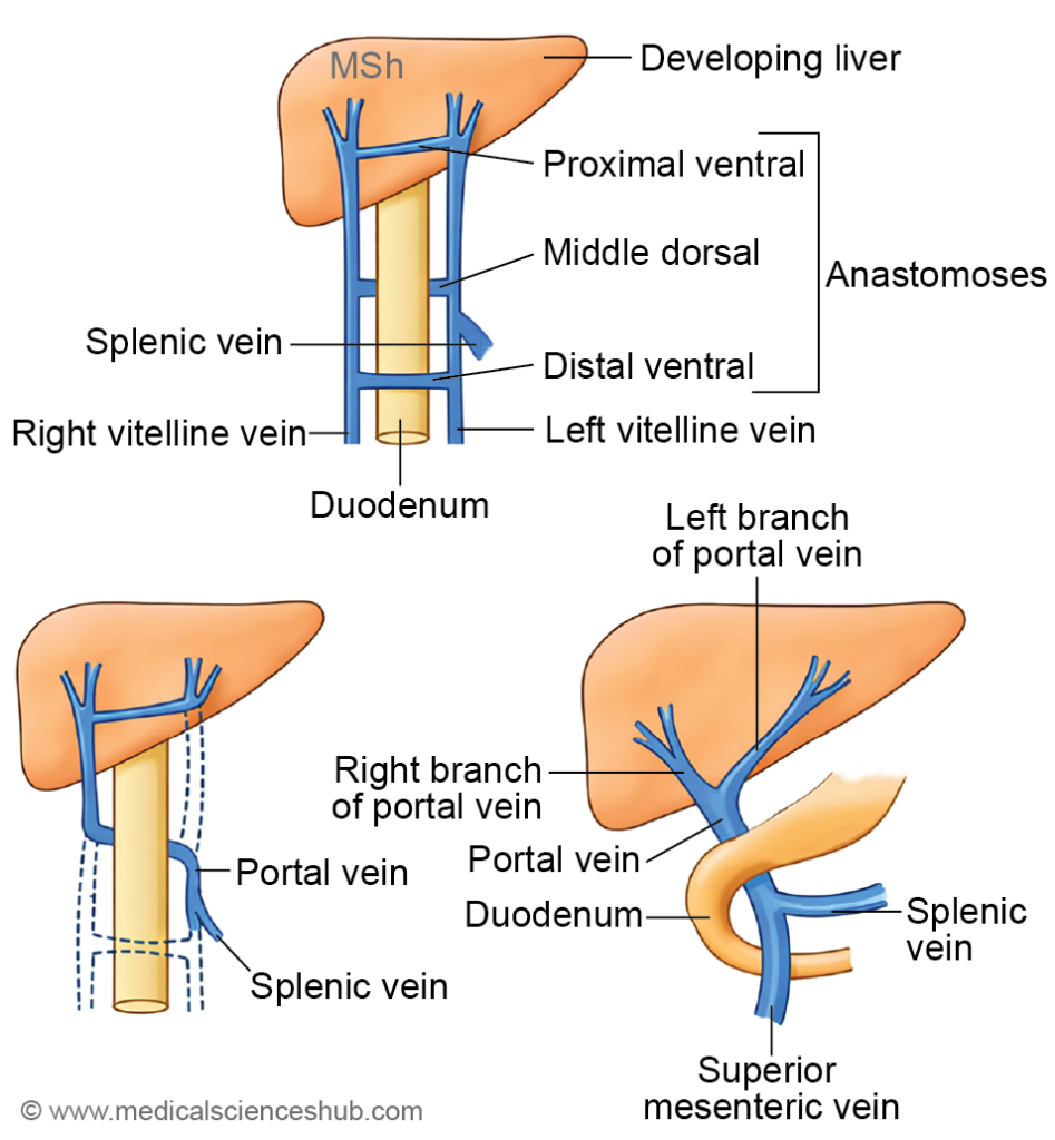 • Hepatic segment – develops from an anastomosis between the right subcardinal vein and the right vitelline vein (future common hepatic vein).