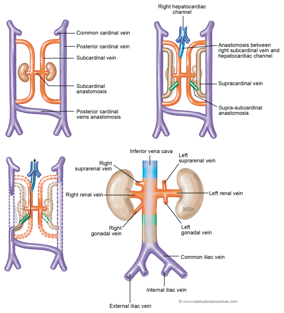 • Renal segment – formed from the right suprasubcardinal anastomosis, which connects the supracardinal and subcardinal venous systems.