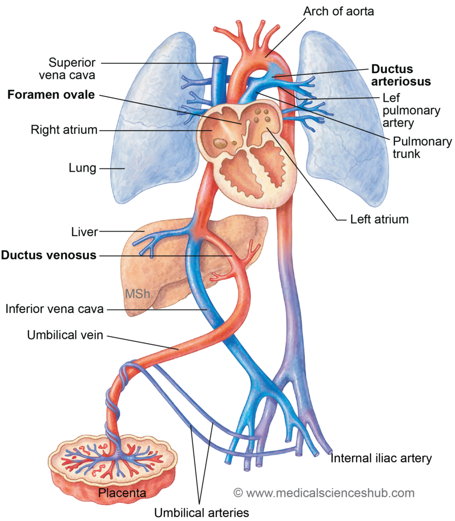 • Describe fetal circulation and the pathways through which blood flows in the fetus.