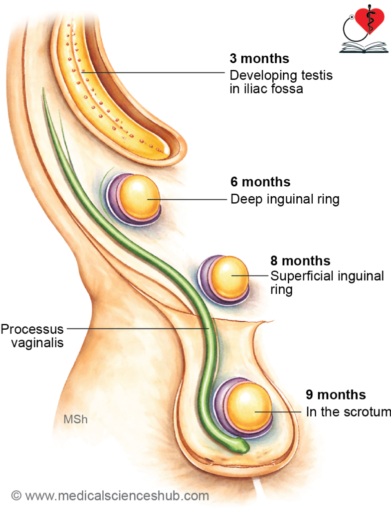 - End of sixth month: It arrives at the deep inguinal ring.