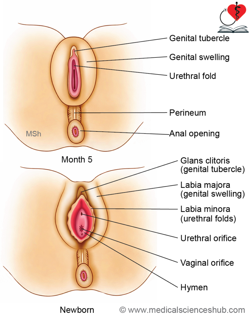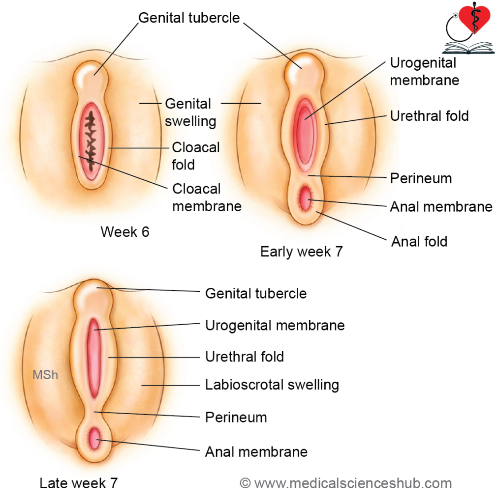 During early embryonic stages, the external genitalia of both sexes are morphologically identical. Differentiation begins around the 4th week:
