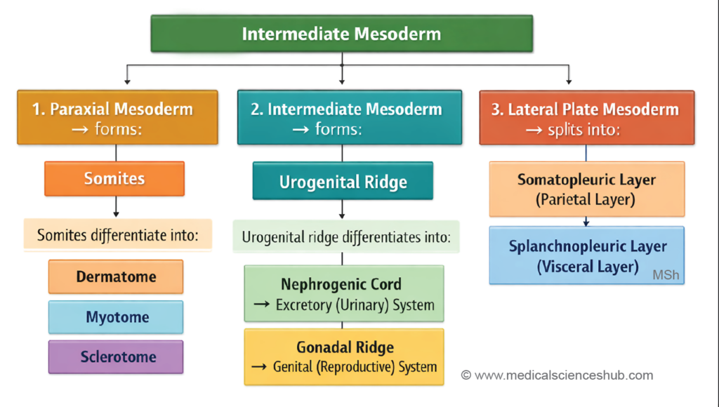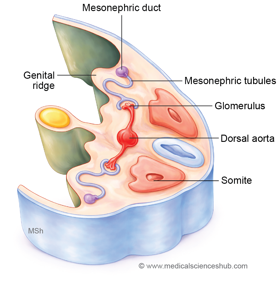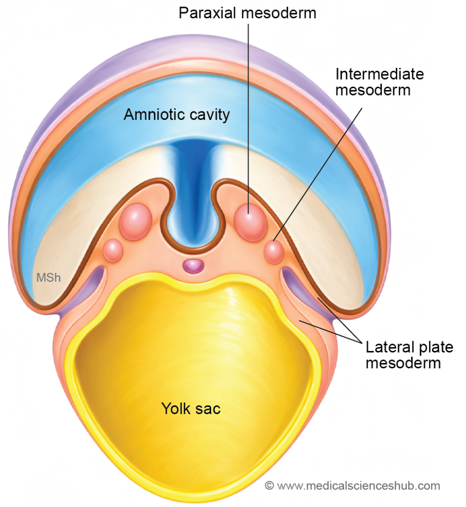 - Intermediate mesoderm, which forms most components of the genitourinary system.