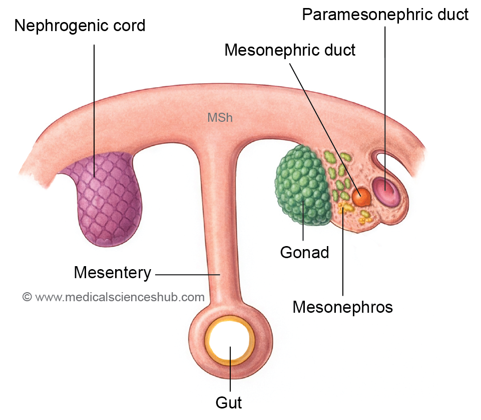 - the genital ridge (medial part), which contributes to the developing gonads, and