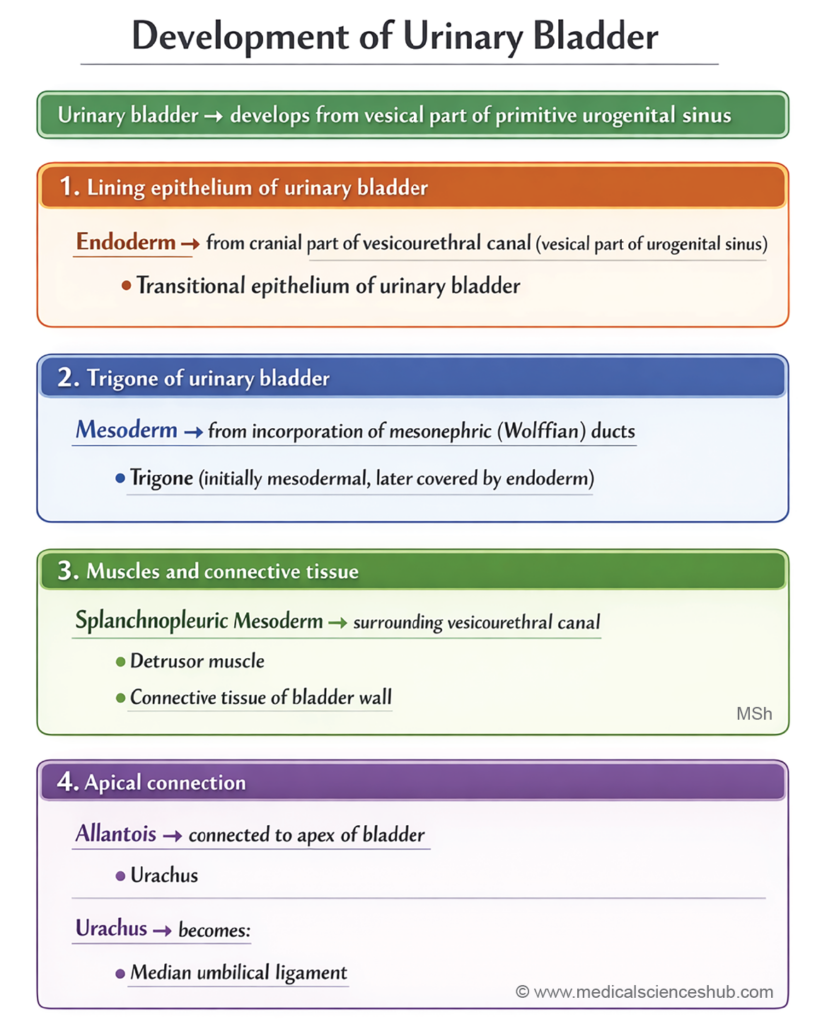 | Apex (urachus) | Allantois → median umbilical ligament |