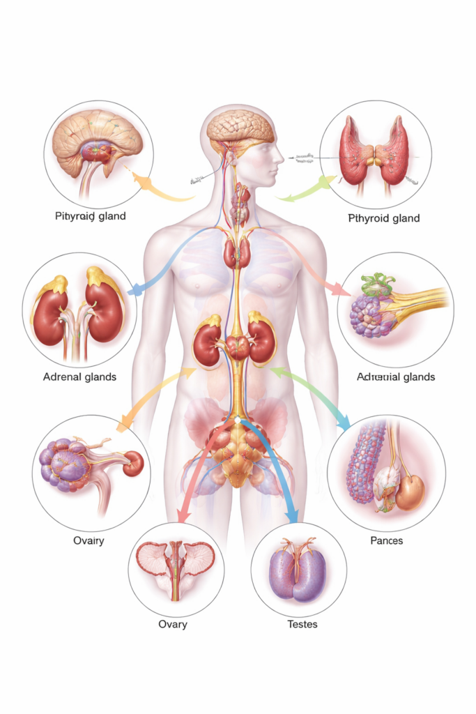 Explore hormonal regulation of body functions through endocrine glands, including mechanisms of hormone action and metabolic control.